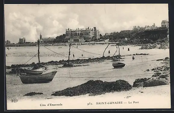 AK Saint-Lunaire, Le Port avec vue sur la plage et bâtiments en arrière-plan