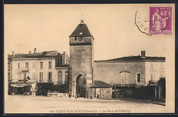 AK Saint-Macaire, La Porte de l`Horloge et bâtiments environnants