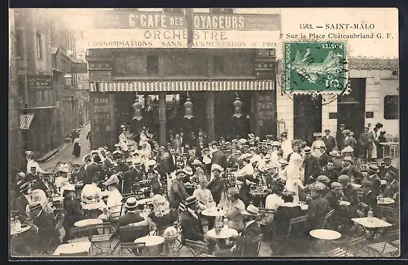 AK Saint-Malo, Sur la Place Châteaubriand, animation devant le Café des Voyageurs