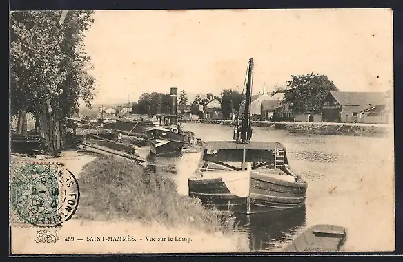 AK Saint-Mammès, Vue sur le Loing avec bateaux amarrés