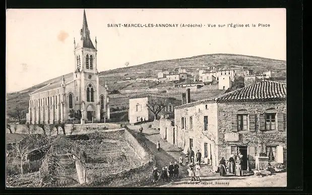AK Saint-Marcel-les-Annonay, Vue sur l`Église et la Place