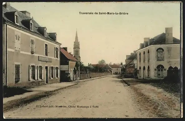 AK Saint-Mars-la-Brière, Traversée du village avec vue sur le clocher