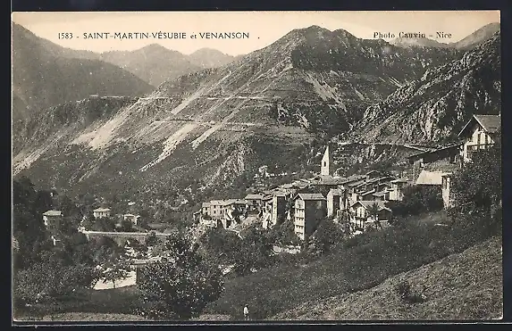 AK Saint-Martin-Vésubie, Vue du village et des montagnes environnantes