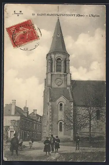 AK Saint-Martin-d`Auxigny, L`Église et les passants devant l`église