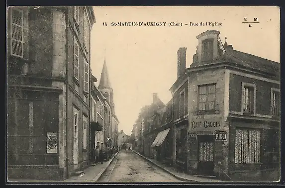 AK Saint-Martin-d`Auxigny, Rue de l`Église avec le Café Gadon