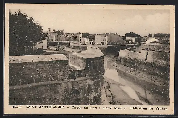 AK Saint-Martin-de-Ré, Entrée du Port à marée basse et fortifications de Vauban