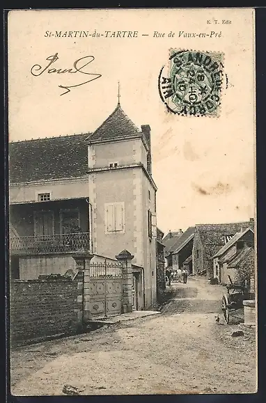 AK Saint-Martin-du-Tartre, Rue de Vaux-en-Pré avec maisons et chemin en terre