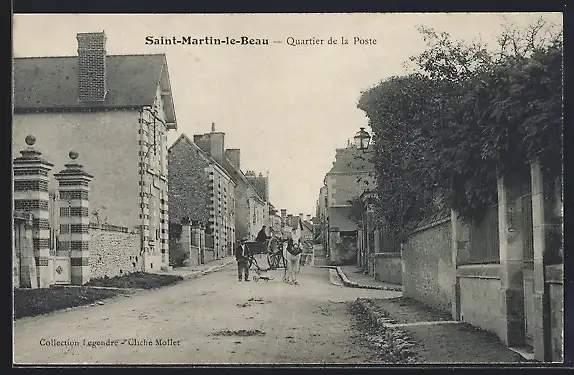 AK Saint-Martin-le-Beau, Quartier de la Poste avec calèche sur la route principale