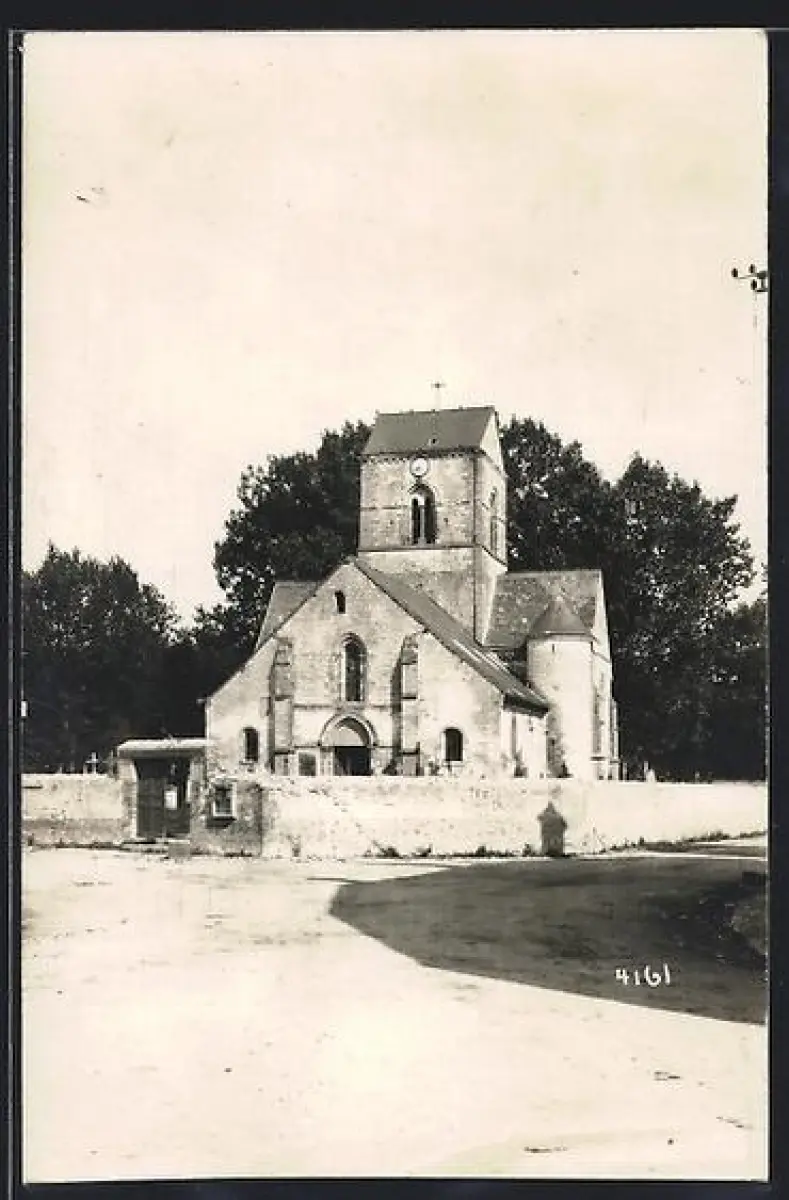 AK Saint-Masmes, Église entourée de murs avec arbres en arrière-plan
