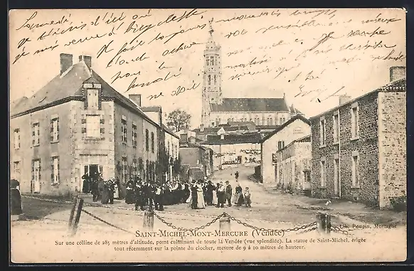 AK Saint-Michel-Mont-Mercure, Ortspartie mit Kirche
