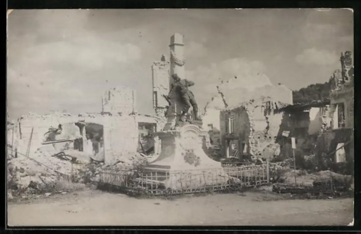 AK Saint-Mihiel, Monument aux morts de 1870-71 entouré de ruines