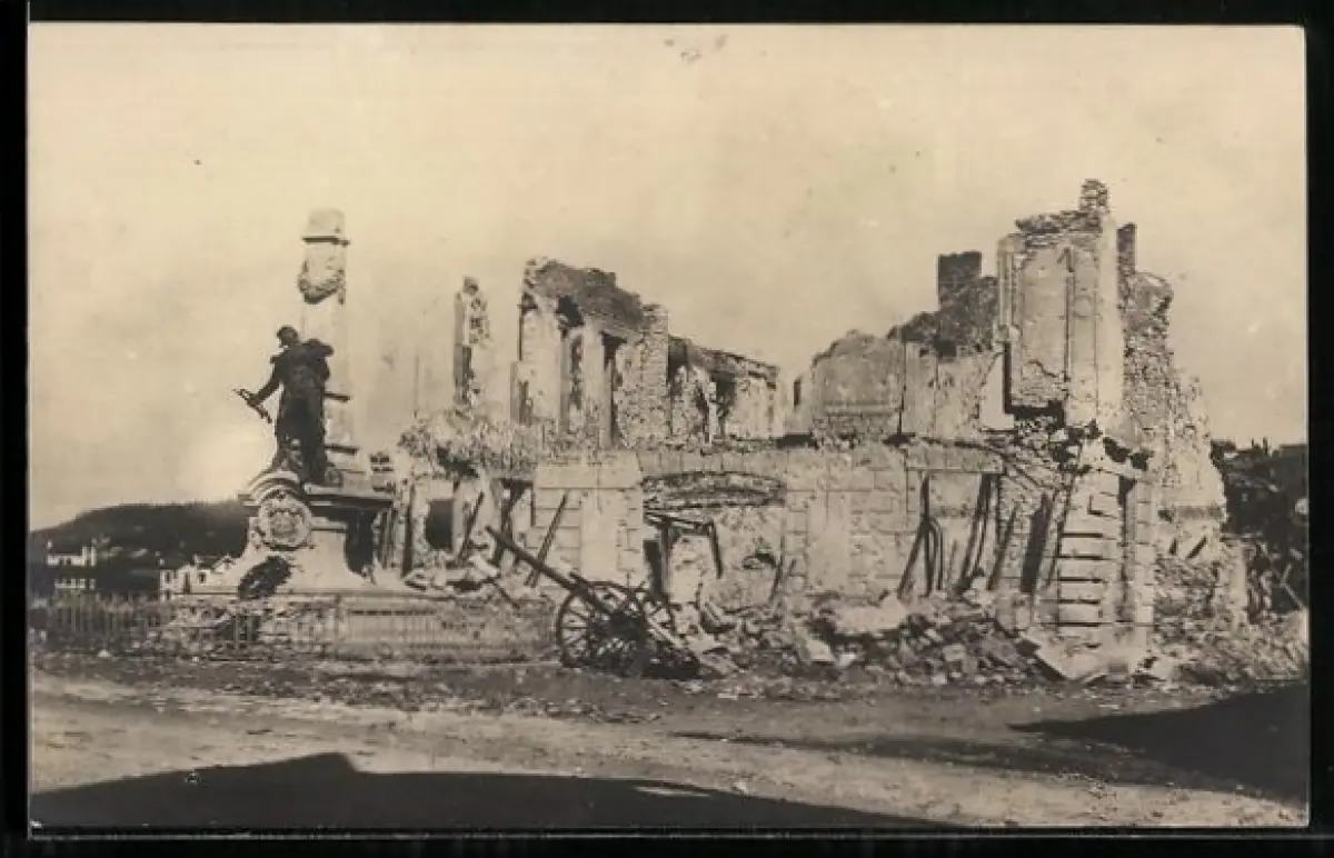 AK Saint-Mihiel, Monument avec ruines d`un bâtiment détruit, 1916