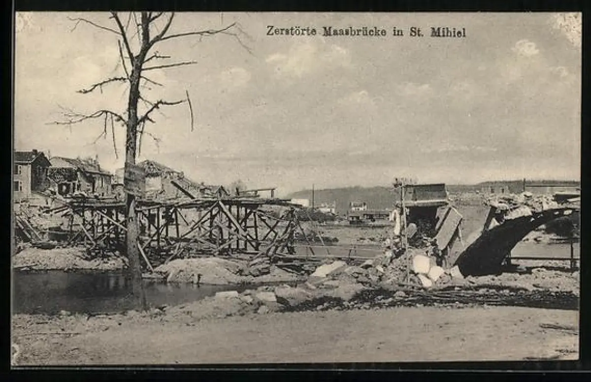 AK Saint-Mihiel, Zerstörte Maasbrücke