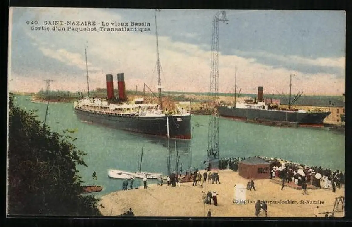 AK Saint-Nazaire, Le vieux Bassin, Sortie d`un Paquebot Transatlantique, Hafen