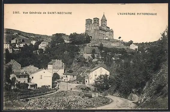 AK Saint-Nectaire, Vue générale et l`église sur la colline