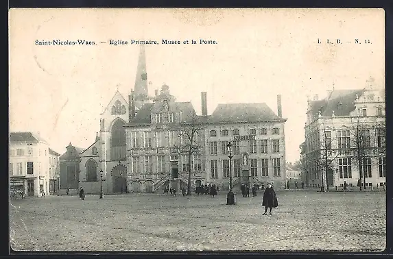 AK Saint-Nicolas-Waes, Eglise Primaire, Musée et la Poste