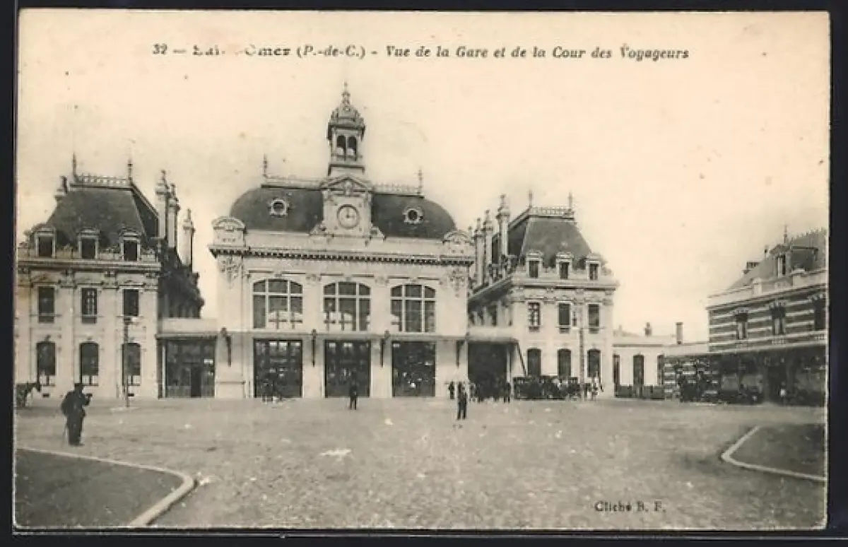 AK Saint-Omer /P.-de-C., Vue de la Gare et de la Cour des Voyageurs, Bahnhof