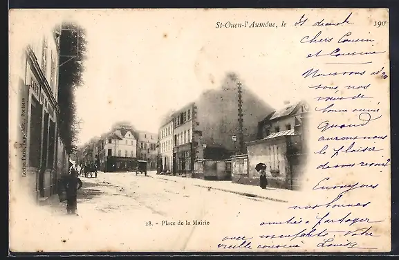 AK Saint-Ouen-l`Aumône, Vue sur la Place de la Mairie avec passants et bâtiments adjacents