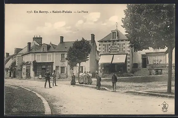 AK Saint-Palais, La Place avec habitants et commerces en Berry