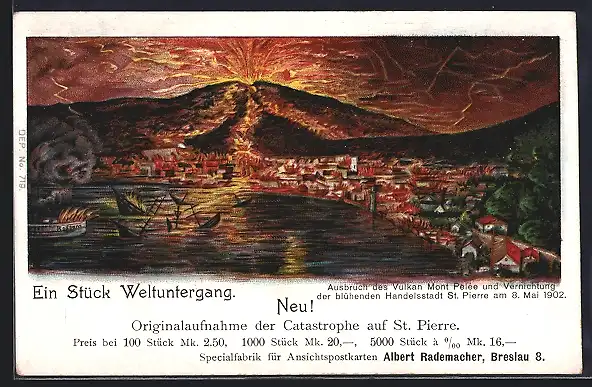 AK Saint-Pierre, Ausbruch des Vulkans Mont Pelé am 8. Mai 1902