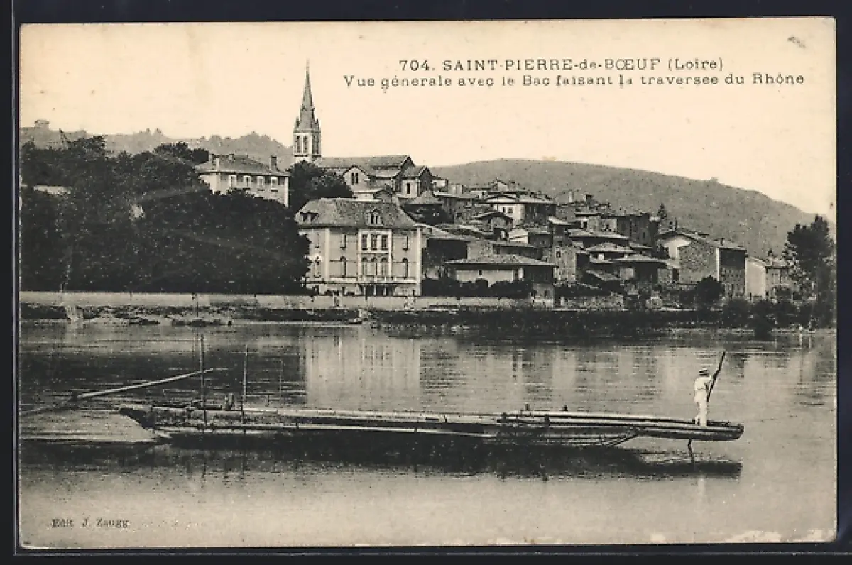 AK Saint-Pierre-de-Boeuf, Vue générale avec le Bac faisant la traversée du Rhône