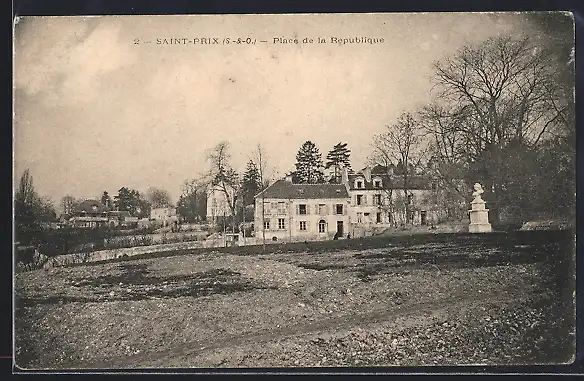 AK Saint-Prix, Vue du Place de la République avec bâtiments et statue