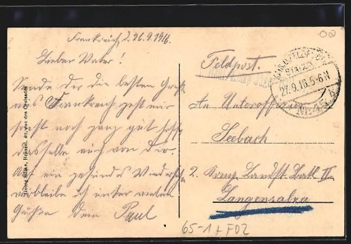 alte Ansichtskarte, gelaufen 1916 als Feldpost, guter Zustand