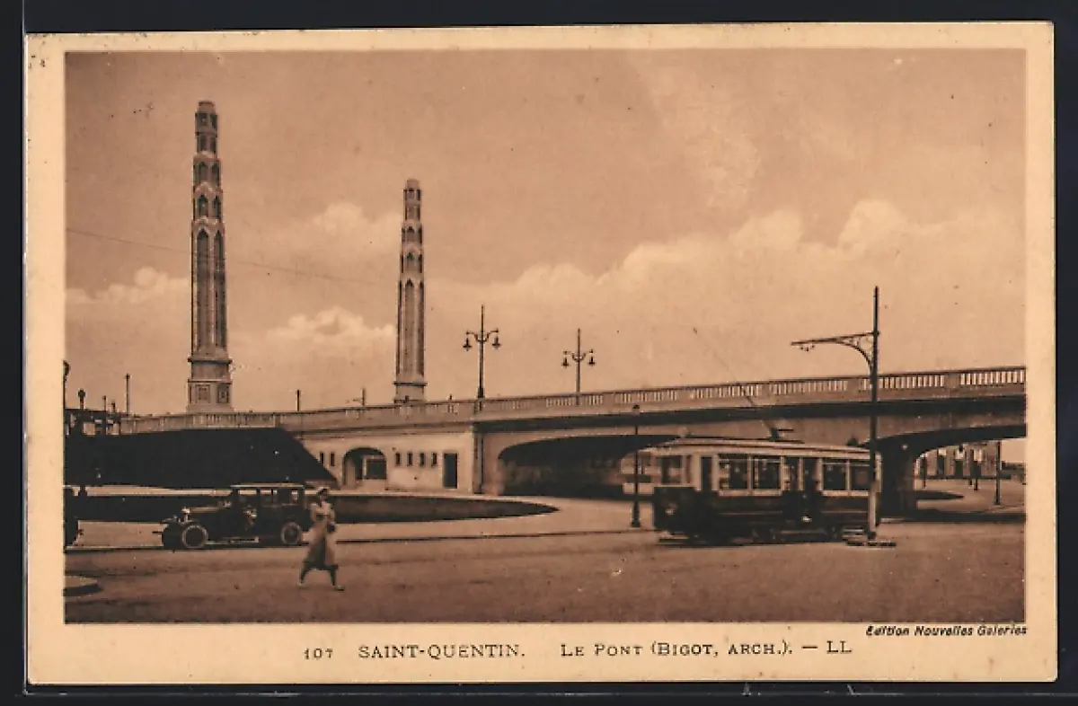 AK Saint-Quentin, Le Pont, Strassenbahn