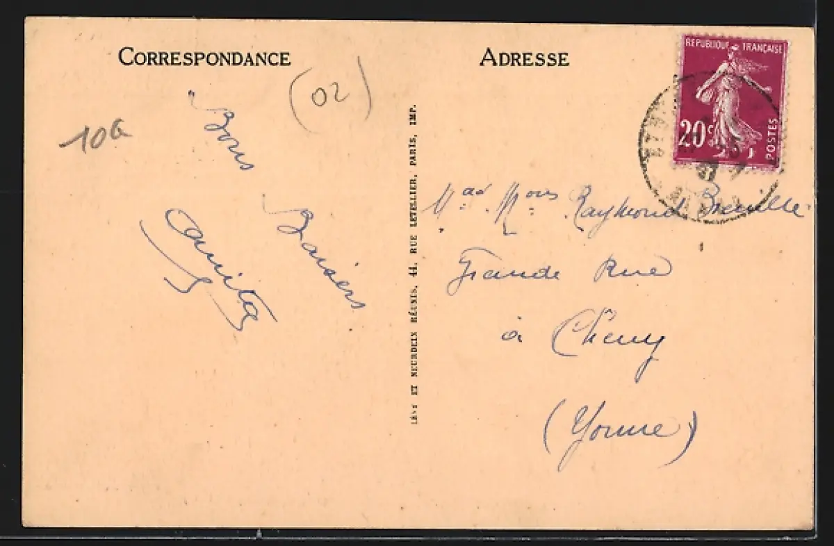 Personenbezogene Daten auf der Rückseite der Karte wurden durch blauen Textmarker unkenntlich gemacht. Die blauen Stellen sind auf die Vorderseite durchgeweicht und wirken sich negativ auf das Postkartenfoto aus