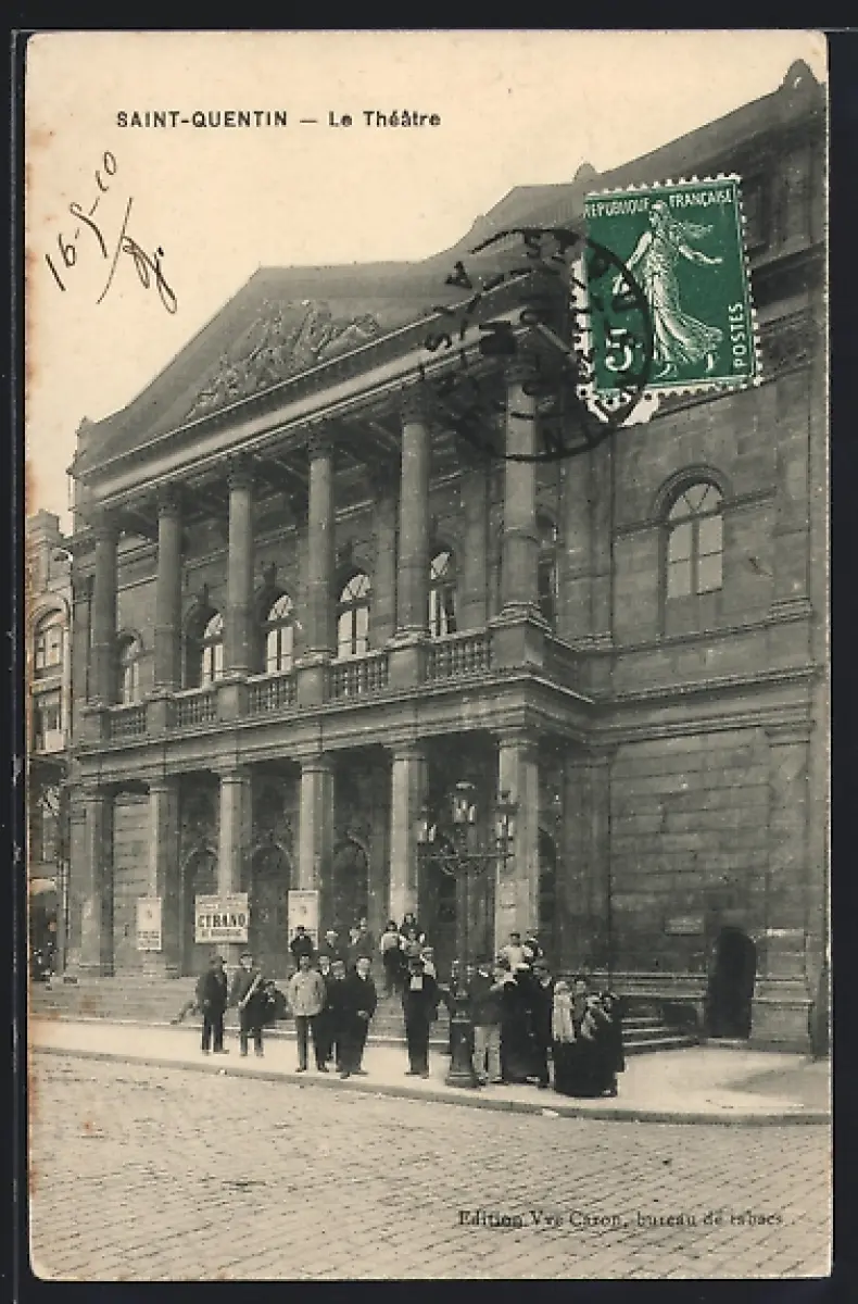 AK Saint-Quentin, Le Théâtre avec des passants devant l`entrée