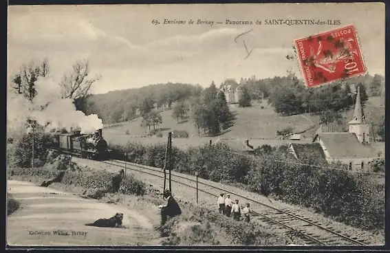 AK Saint-Quentin-des-Iles, Panorama mit Dampflok
