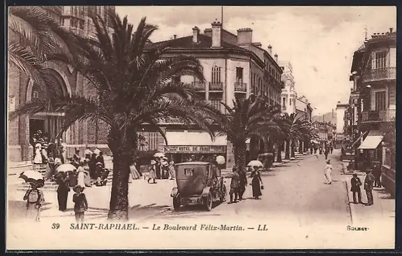 AK Saint-Raphaël, Le Boulevard Félix-Martin animé avec palmiers et passants