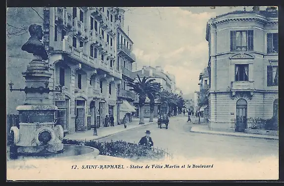 AK Saint-Raphaël, Statue de Félix Martin et le Boulevard
