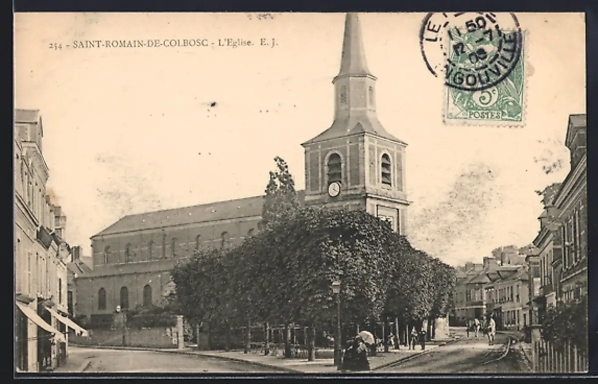 AK Saint-Romain-de-Colbosc, L`Église et la place centrale animée