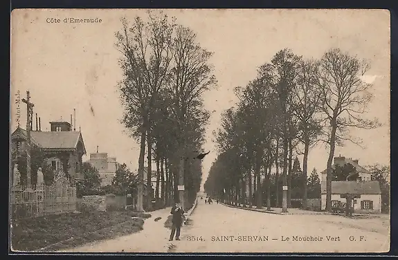 AK Saint-Servan, Le Mouchoir Vert et l`allée bordée d`arbres