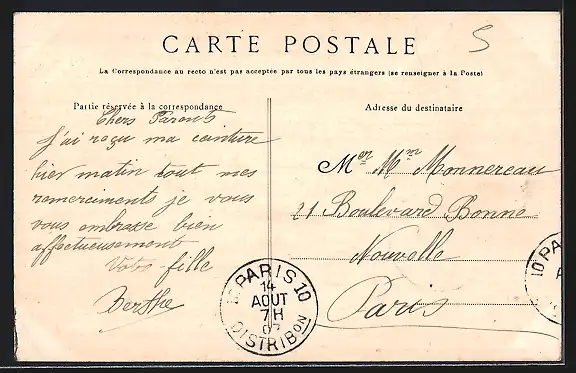 gelaufen 1907, Eckknick unten links, guter Zustand