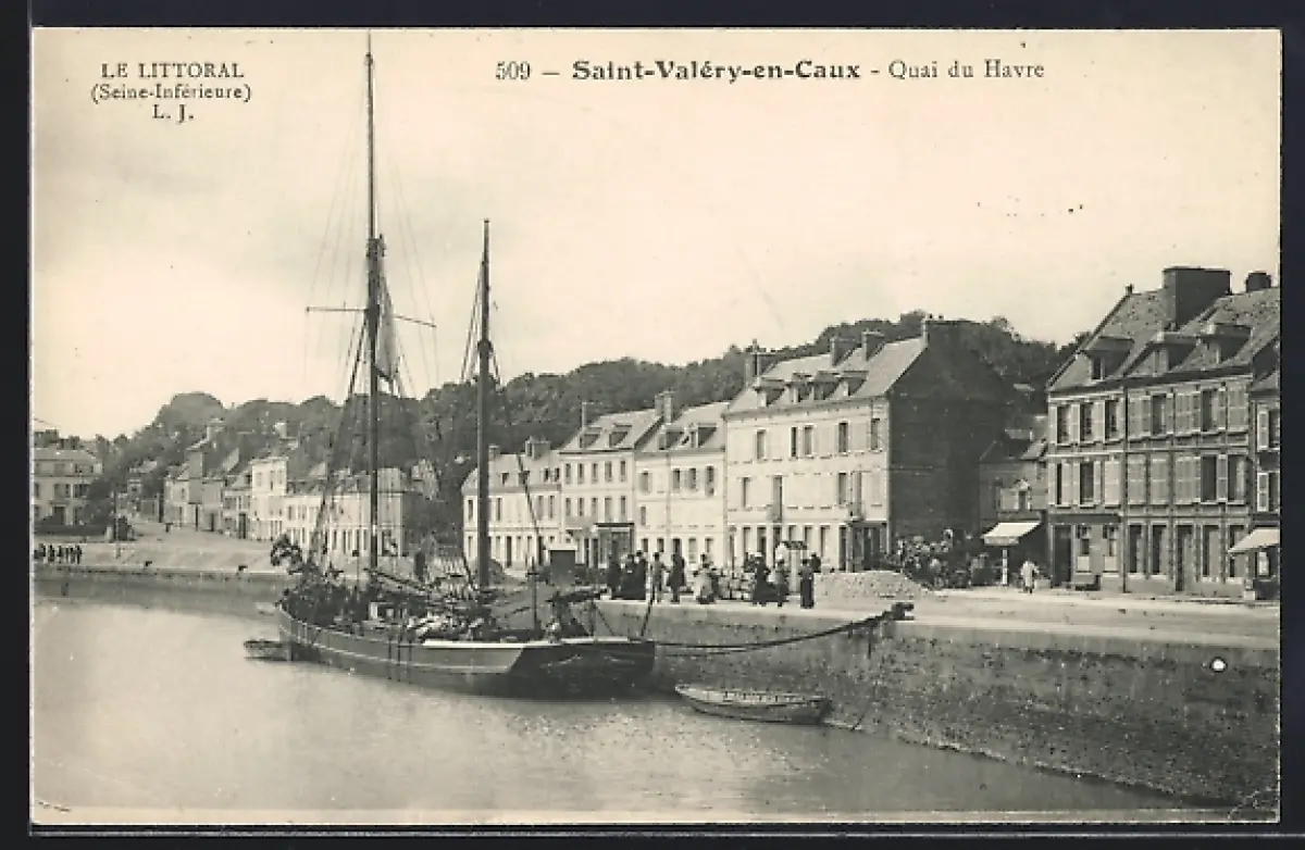 AK Saint-Valéry-en-Caux, Quai du Havre avec bateau amarré et vue des bâtiments??