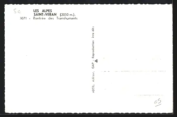 AK Saint-Véran, Rentrée des Transhumants dans les Alpes