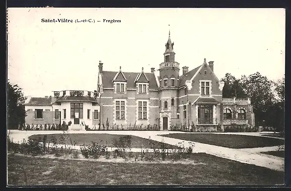 AK Saint-Viâtre, Frégebre, vue du manoir élégant et jardins devant