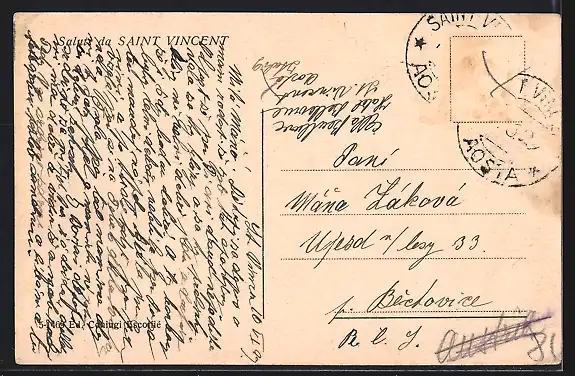 gelaufen 1909, Briefmarke entfernt, Eckknicke li. unten, guter Zustand