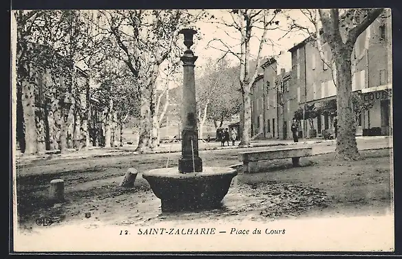 AK Saint-Zacharie, Place du Cours avec fontaine et arbres majestueux
