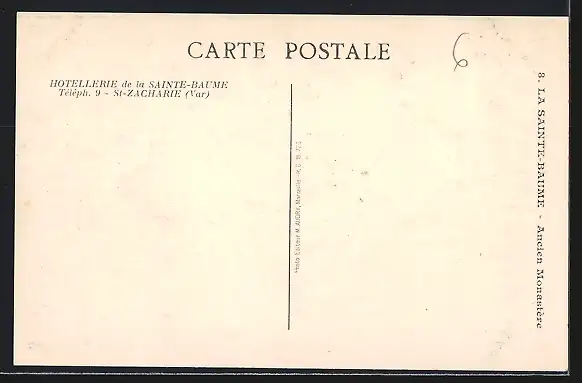 AK Sainte-Baume, Ancienne hostellerie avec voitures anciennes devant la montagne