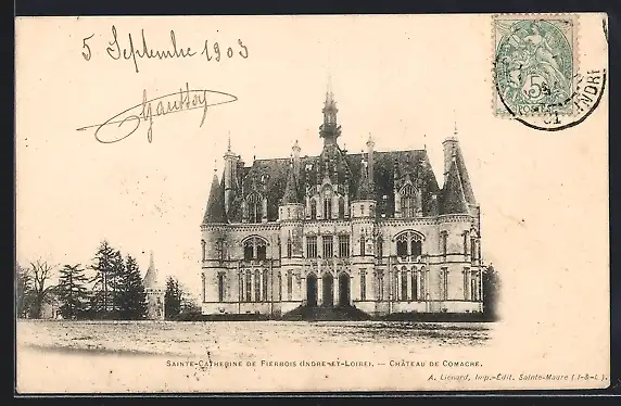 AK Sainte-Catherine-de-Fierbois, le château de Comarcre, vue d`ensemble avec un coin du jardin