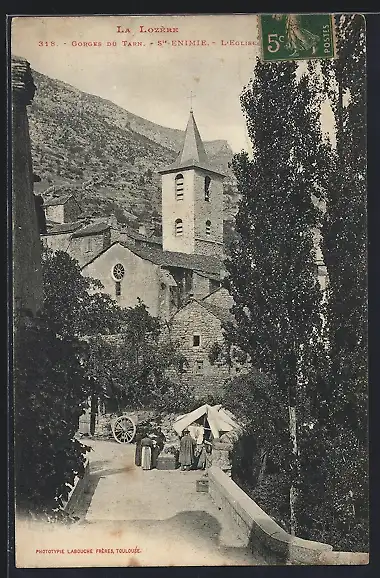 AK Sainte-Enimie, L`Église et vue sur le village dans les Gorges du Tarn