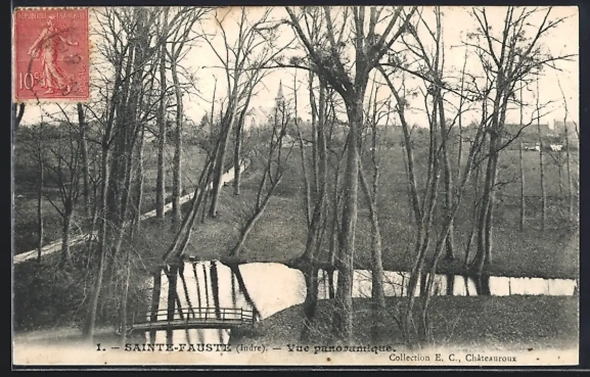 AK Sainte-Fauste /Indre, Vue panoramique avec pont et arbres en hiver