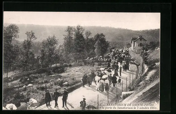 AK Sainte-Feyre, Sanatorium, La foule a la porte du Sanatorium