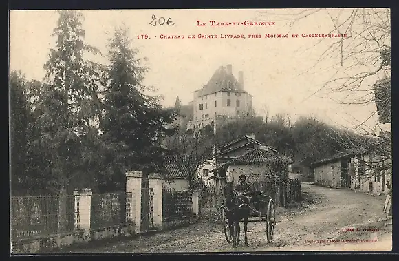 AK Sainte-Livrade, Château près Moissac et Castelsarrasin avec une calèche sur le chemin