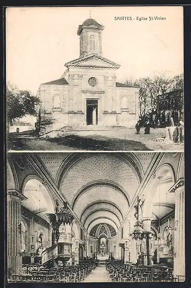 AK Saintes, Église St-Vivien, Vue extérieure et intérieure