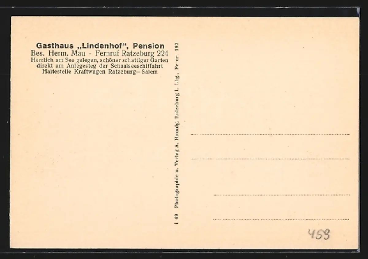 AK Salem b. Ratzeburg, Gasthaus Lindenhof, Bes. Herm. Mau