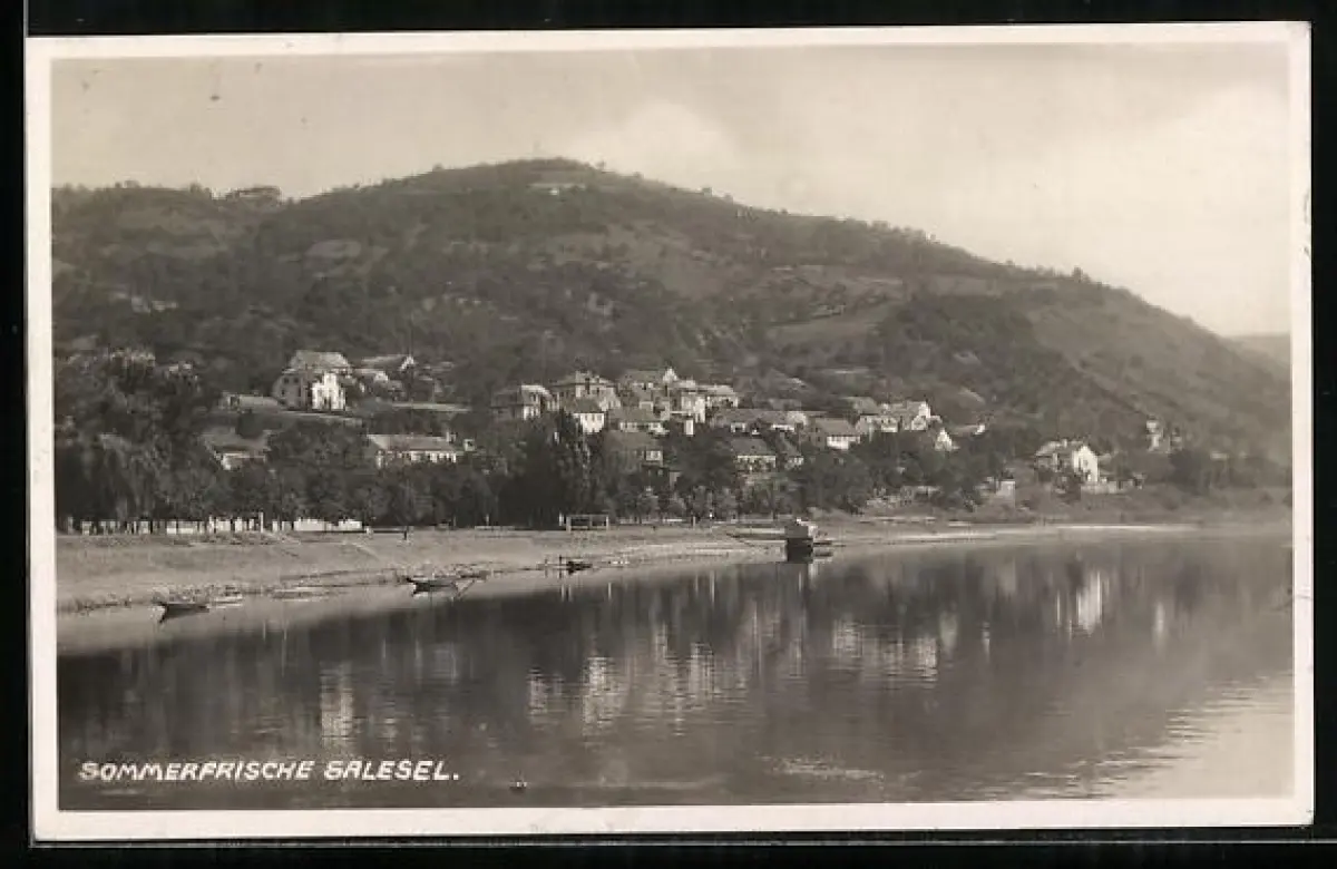 AK Salesel / Dolni Zalezly, Ortsansicht vom Wasser aus